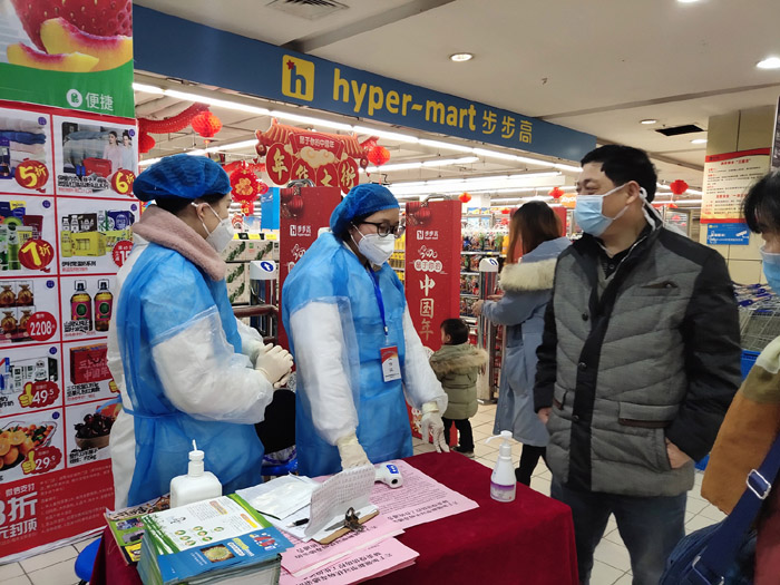 劉錦良(右1)看望在超市工作的醫務工作者