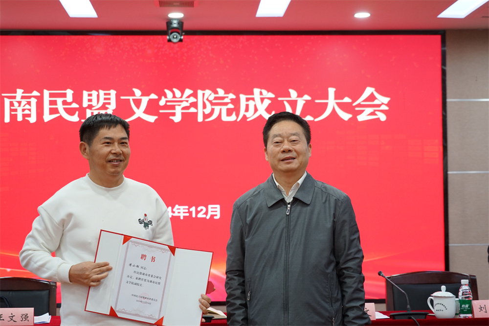 12月10日,湖南民盟文學院成立大會在長沙召開。婁底市政協副主席、民盟婁底市委會主委傅小松,湖南人文科技學院教授、一級作家游宇明被聘為湖南民盟文學院副院長,盟員劉豐為湖南民盟文學院成員。