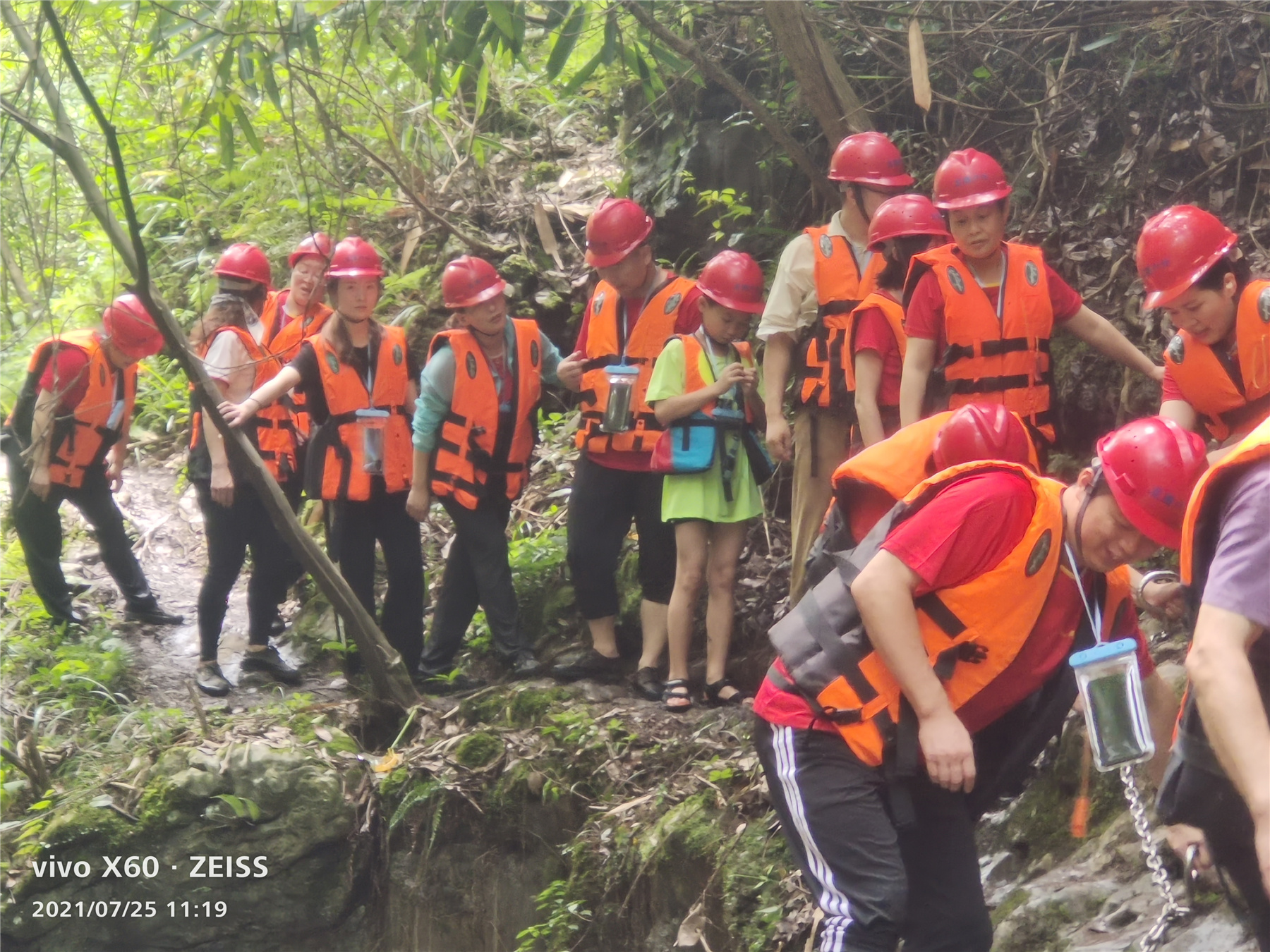 調研組一行沿著蜿蜒的山路尋至峽谷下游,再沿著起伏跌宕的河床,踏著潺潺溪流,逆流而上。深邃的峽谷里碧水幽潭,瀑布飛濺,兩岸山林掩映,巖如刀削。一行人互幫互助,經受耐力、體力的雙重考驗,淌過湍急的溪流,攀上陡峭的巖壁,穿過茂密的叢林,親身體驗溯溪帶來的夏日清涼和驚險刺激。經過約2小時的跋山涉水,調研組一行抵達終點。大家紛紛感嘆月光巖溯溪毗鄰婁底市區,交通便利,風景優美,溪水純凈,線路開發安全、刺激,是夏季避暑納涼、嬉水游玩的好去處,適宜開展團隊活動和親子活動,值得廣為推介。認為當地政府因地制宜,通過打造旅游業推動鄉村振興的發展思路切合實際,前景可觀。同時,大家還結合切身感受,對優化溯溪線路、改善基礎設施、完善接待等配套服務等提出了意見建議。