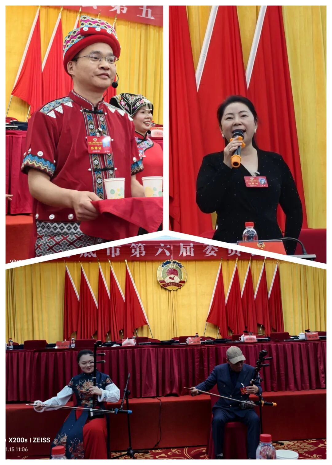 會議期間,陳艷代表以個人名義制作并協助其他代表制作視頻共計10期,累計播放量突破100萬次,有力宣傳了兩會盛況。民盟文藝界委員精彩獻藝,劉劍傾情演唱《好日子》,劉永安參加新化山歌《敬茶歌》演唱,譚明哲與入盟積極分子孟沁芯合奏二胡曲《揚鞭催馬運糧忙》,獲得了現場委員的一致好評。
