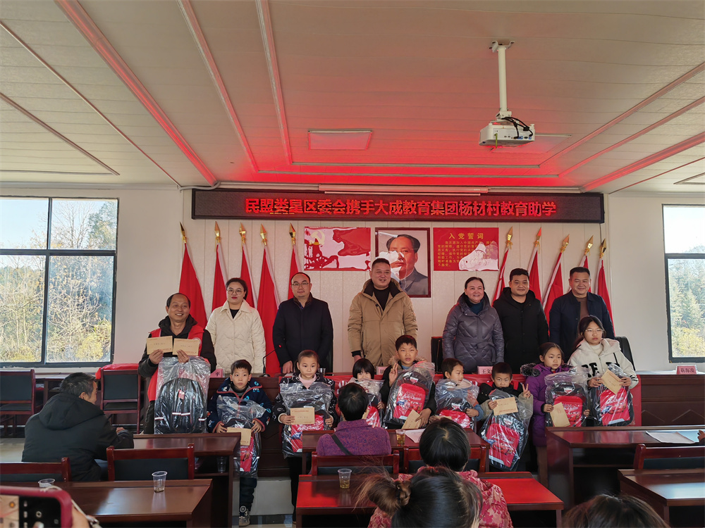 12月23日上午,民盟婁星區委員會攜手大成教育集團到水洞底鎮楊材村開展教育助學活動。區政協副主席、民盟區委會主委王文成出席,區委統戰部駐楊材村工作隊隊長彭世雄,水洞底鎮黨委委員、統戰委員胡洪文、民盟區委會全體委員,區政協委員、盟員、大成教育集團總園長楊平,總經理蔣海凌及下屬幼兒園和培訓機構負責人、楊材村等單位負責人和受資助學生及其監護人共40余人參加活動。會議由民盟區委會專職副主委文細光主持。