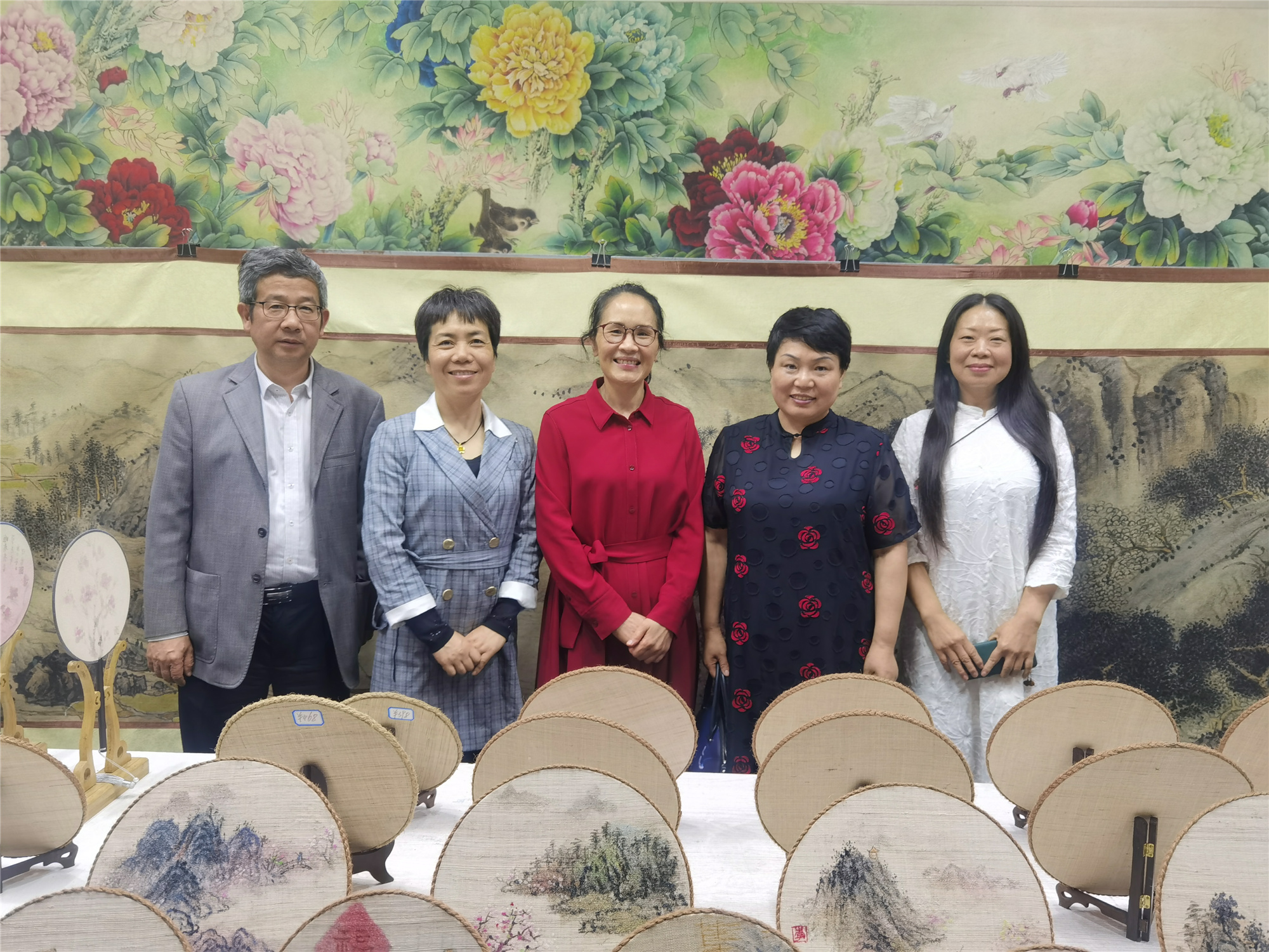 考察常德麻質畫非遺傳承人、盟員李健鷹(右1)麻質畫工作坊