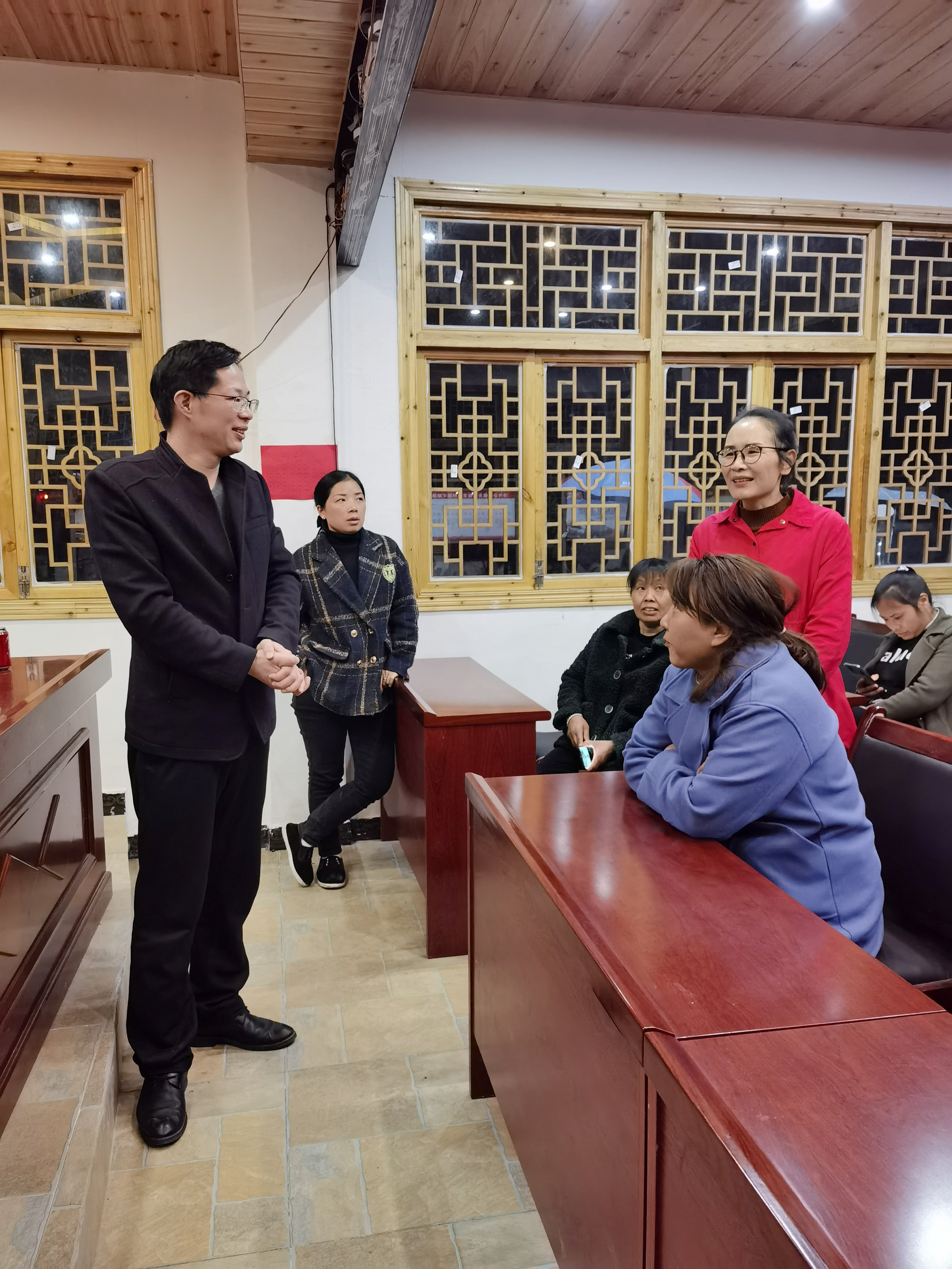邵瑛(右)與新化縣、鄉(xiāng)有關(guān)人員交談茶葉發(fā)展
